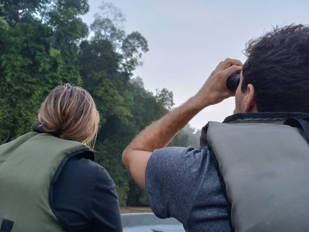 If you’re up for a bit of adventure, head out on foot with your guide along established logging road. This method is perfect for spotting primates, birds, insects, and getting up close to the forest’s finer details — like animal tracks, unique plants, and sounds that you’d miss on a drive.